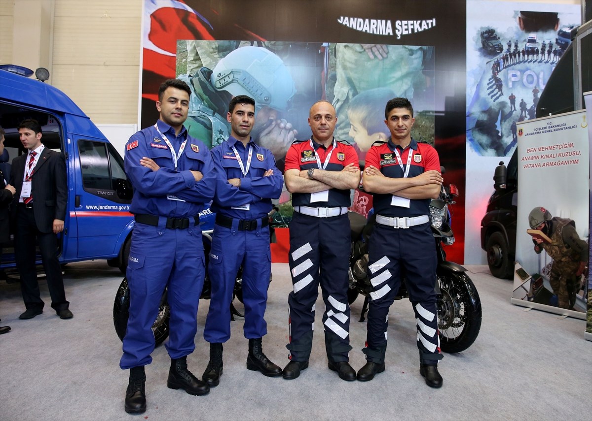Jandarma genel komutanlığı'nın idef'teki standında jandarma ekiplerinin görevleri sırasında kullandıkları ürün ve kıyafetler yer aldı.